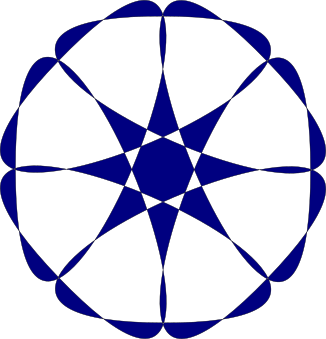 This features a blue and white circle with an eight-pointed star in the center. The star is surrounded by a series of smaller circles, creating a visually appealing pattern. The overall design gives off a sense of depth and complexity, making it an interesting focal point for any space. This unique pattern could be used as a decorative element or even as part of a logo, showcasing the creativity behind its creation.