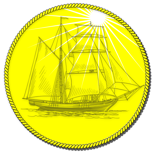 This features a yellow coin with an illustration of a sailboat on it. The boat is prominently displayed in the center of the coin, surrounded by a circle that adds to its visual appeal. The sailboat appears to be floating on water, giving the impression of being at sea. This unique coin design showcases the artistic talent and creativity behind the creation of such an item.