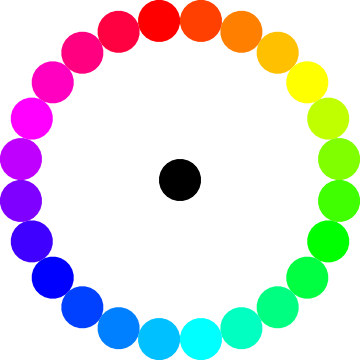 This features a large, colorful circle with various colors on it. In the center of the circle is a black dot that stands out against the vibrant background. The circle appears to be made up of smaller circles or dots, each one having a different color. These individual dots are scattered all around the main circle, creating an intricate and visually appealing pattern. Overall, the image exudes a sense of creativity and artistic expression through its use of colors and design elements.