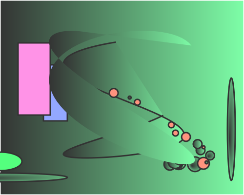 This features a green background with an abstract design. In the center of the scene, there is a large circle that appears to be made up of smaller circles. These smaller circles are scattered throughout the larger circle and vary in size. Some of these smaller circles are located closer to the edges of the larger circle while others are more centrally placed. The overall effect creates an interesting visual pattern that draws attention to the centerpiece of the design.