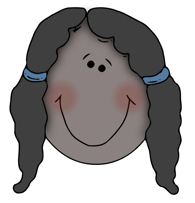 This features a smiling cartoon face with big brown hair, wearing blue headbands. The face is round and has a large smile on it, giving the impression of being happy or playful. The hair is styled in braids, adding to the overall charm of the character. The blue headbands are placed at the top of the image, emphasizing their presence and contributing to the overall design of the cartoon face.