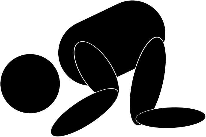 This features a black silhouette of a person in an awkward position, with their head down and knees bent. This figure appears to be bowing or crouched over, possibly in a playful or humble manner. The silhouette is the main focus of the image, occupying most of the frame.
