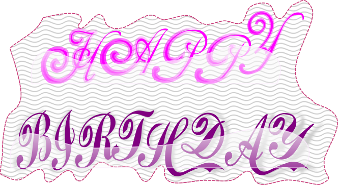 This features a pink and purple sign that reads "Happy Birthday." The sign is decorated with cursive writing, giving it an elegant appearance. The background of the sign has a wavy pattern, adding to its visual appeal. This birthday greeting could be used for various occasions or events, making it a versatile choice for celebrating someone's special day.