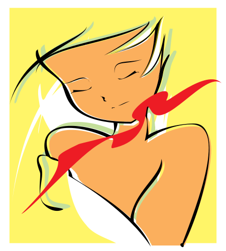 This features a cartoon-like woman with blonde hair, lying down and resting her head on her hand. She has a red line across her neck, adding an interesting detail to the scene. Her eyes are closed, giving the impression of relaxation or sleep. The overall composition of the image is visually appealing and captures the essence of a peaceful moment.