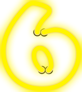 This features a yellow neon sign with the number six prominently displayed. The six is surrounded by two small circles, which are likely meant to represent nipples or breasts. This unique design gives the impression of an adult-themed symbol, possibly related to a specific brand or product. The overall appearance of the image is eye-catching and memorable due to its bold use of neon colors and unconventional representation of the number six.