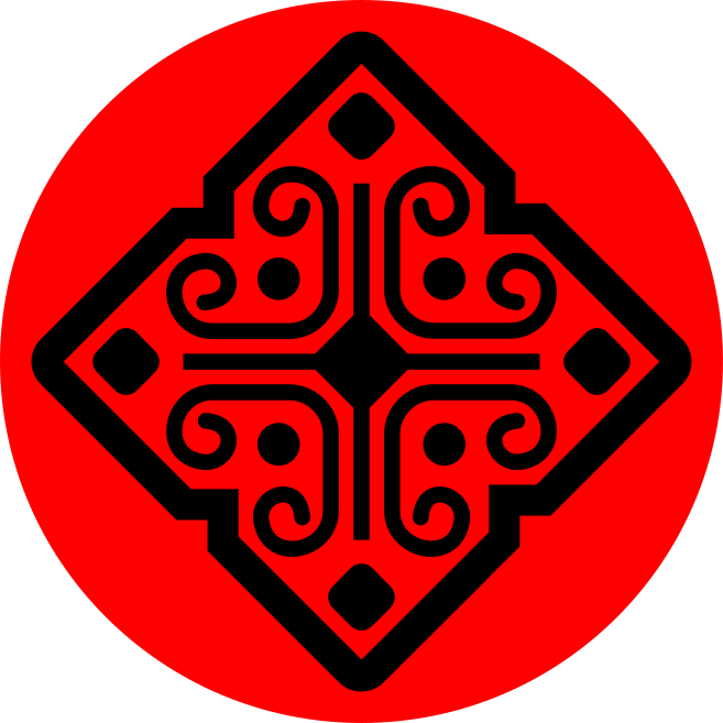 This features a red circle with an intricate design on it. The design is made up of black and white swirls, creating a visually appealing pattern. The circle itself has a slightly darker shade than the rest of the design, giving it a more prominent appearance. This unique artwork could be used as a decorative piece or even as a logo for a company or organization.
