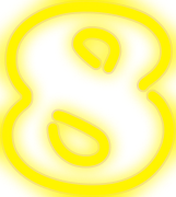 This features a bright yellow number eight, which is illuminated by a light source. The number appears to be made of neon or another similar material that emits a warm glow. The vibrant color and the lighting create an eye-catching visual effect, making it stand out against its surroundings. This could potentially be used as a decorative element in various settings, such as a storefront, restaurant, or event venue to attract attention and convey a sense of energy or excitement.
