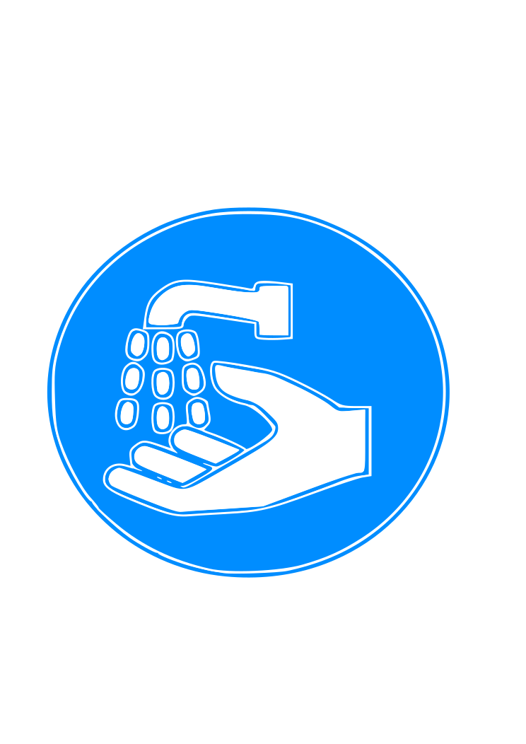 This features a blue circle with an icon of a hand holding a faucet. This symbol is likely used to represent the importance of handwashing and hygiene practices, particularly in healthcare settings or environments where proper sanitation is crucial for preventing the spread of germs and illnesses. The colorful design of the circle makes it visually appealing and easy to recognize, ensuring that people are reminded to maintain good handwashing habits.