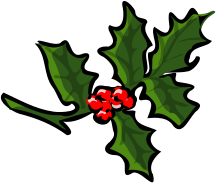 This features a close-up of a green holly branch with red berries. The branch is filled with leaves, and the berries are scattered throughout the scene. There are five distinct leaves visible on the branch, adding to its natural appearance. The overall composition of the image creates an appealing visual representation of the holly plant in its full glory.