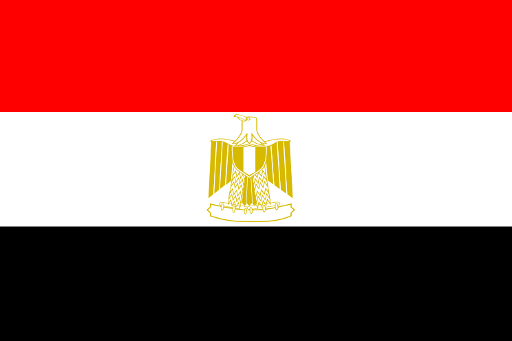 This features a red, white and black flag with the Egyptian national emblem on it. The flag is displayed prominently in the upper left corner of the picture. The emblem consists of a large pyramid, which is an iconic symbol of ancient Egypt. The combination of these colors and the emblem creates a striking visual representation of the country's heritage.