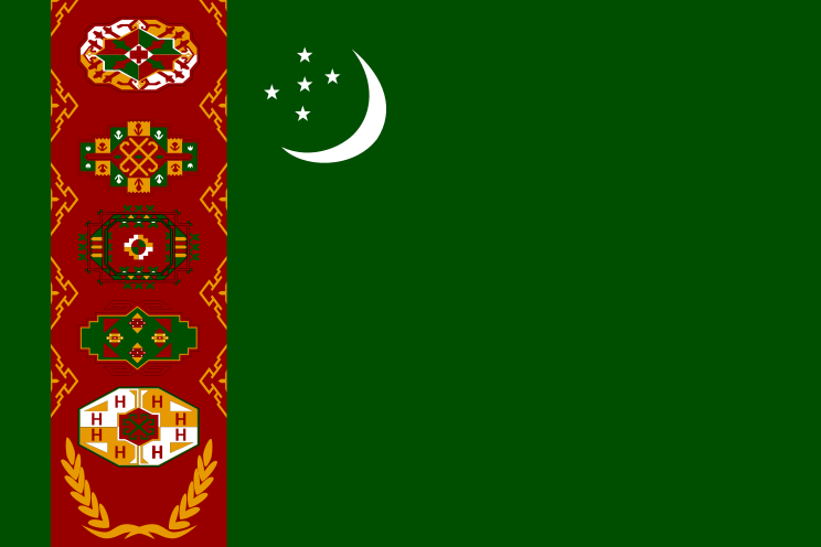 This features a green and red flag with various designs on it. The flag is adorned with several stars, as well as other decorative elements such as a crescent moon and a star. The design of the flag appears to be intricate and ornate, showcasing the cultural significance of the flag. In addition to the flag, there are two people visible in the image, one on the left side and another towards the right side. They seem to be standing near the flag, possibly admiring its beauty or attending an event related to it.