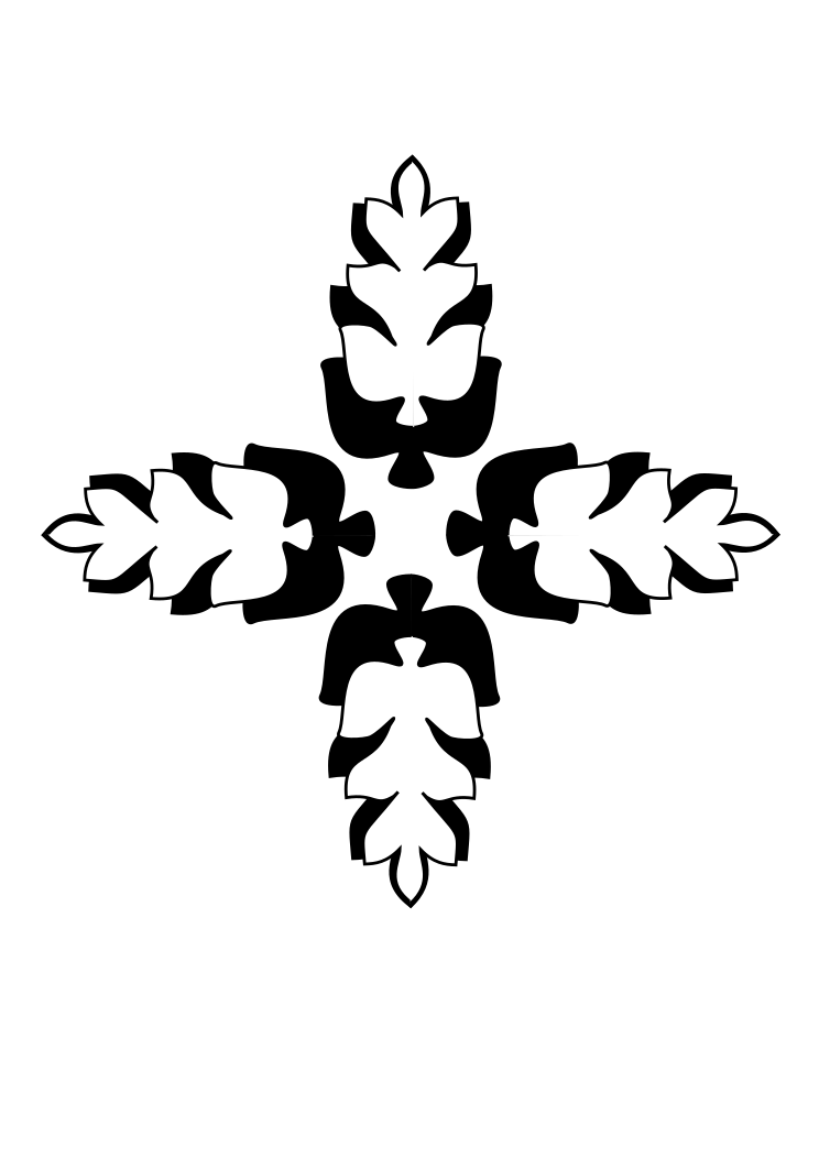 This features a black and white design of four leaf-like shapes, arranged in an X pattern. Each shape is slightly different from the others, creating a visually interesting composition. The overall effect gives off a sense of depth and complexity to the design. This artistic piece could be used as a decorative element or even as a logo for a company or organization that values nature and simplicity.