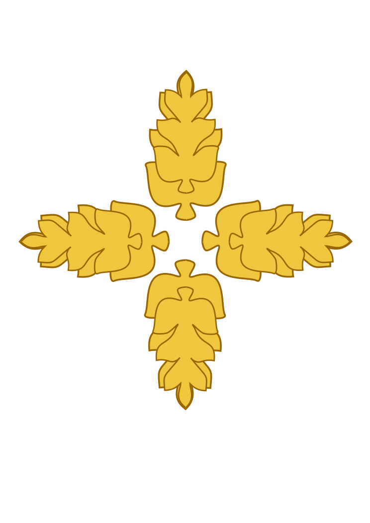 This features a golden cross with four yellow leaves on it. These leaves are arranged in such a way that they form a square around the center of the cross, creating an intricate and visually appealing design. The gold color of the cross and leaves gives them a warm and inviting appearance, making them suitable for various applications like borders, frames or separation bars.