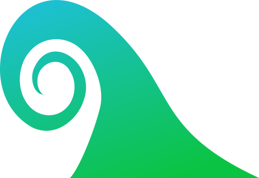 This features a large, curly wave that is predominantly green and blue in color. It appears to be an artistic representation of the ocean's waves, with its distinctive spiral shape giving it a unique appearance. The wave seems to be captured at a moment when it is beginning to curl over itself, creating a dynamic and visually striking scene.