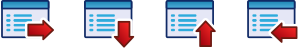 This displays a collection of icons arranged in a row. There are four distinct icons, each with a rectangular shape and an arrow pointing in different directions. These arrows are red in color, adding a pop of contrast to the overall design. The arrangement of these icons creates a visually appealing display that can be used for various purposes such as navigation or organization within a digital platform.