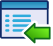 This features a blue and white box with an arrow pointing to the right. This could be a menu icon set or a similar type of graphic element. The arrow is green, which adds a touch of color to the overall design. The box itself appears to be a rectangular shape, making it easy for users to identify and interact with the item.