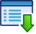 This features a blue and white icon with a green arrow pointing downwards. This icon is likely used for navigating or selecting options within an application, such as a menu or settings screen. The color scheme of the icon consists of light blue backgrounds with white text, giving it a clean and modern appearance.
