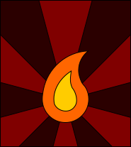 This features a red background with an orange flame in the center. The flame is surrounded by a yellow outline, giving it a distinctive appearance. The overall design of the image gives off a warm and inviting vibe.
