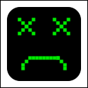 This features a computer screen with an animated sad face, made up of two crossed lines. The sad face is composed of green and white pixels, giving it a unique appearance. The sad face appears to be the main focus of the image, capturing attention and evoking emotions from viewers.