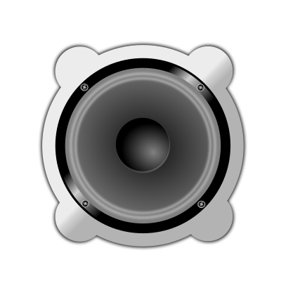 This features a small, round speaker with a black center. It is placed in the middle of a white background, making it stand out prominently. The speaker appears to be an icon or symbol, possibly representing audio equipment or technology. Its size and simplicity give it a clean and modern appearance, which makes it suitable for various applications such as digital artwork, product design, or even as a decorative element in a room.
