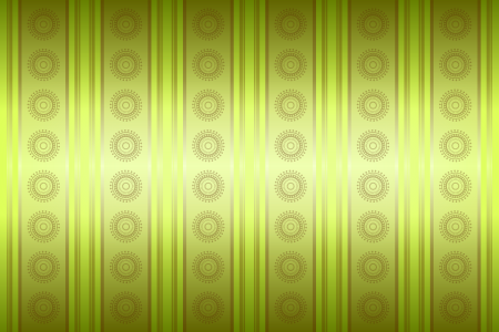 This features a yellow and green striped wallpaper with circles on it. The wallpaper is arranged in a pattern, creating an interesting visual effect. There are numerous circles of various sizes scattered throughout the wallpaper, adding depth to the design. The combination of yellow and green creates a warm and inviting atmosphere, making this wallpaper suitable for a variety of interior decorating styles.