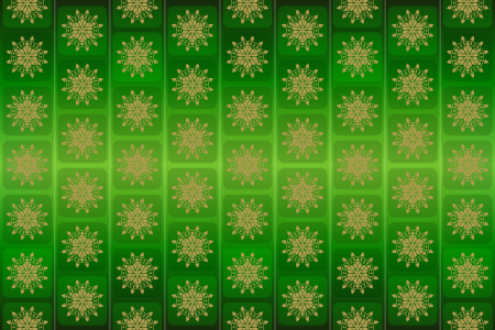 This features a green and gold wallpaper with a pattern of snowflakes. There are twelve distinct snowflake patterns in total, each varying slightly from the others. The snowflakes are arranged in rows, creating an organized and visually appealing design. This wallpaper would make for a beautiful addition to any room, adding a touch of elegance and warmth with its festive colors and intricate pattern.