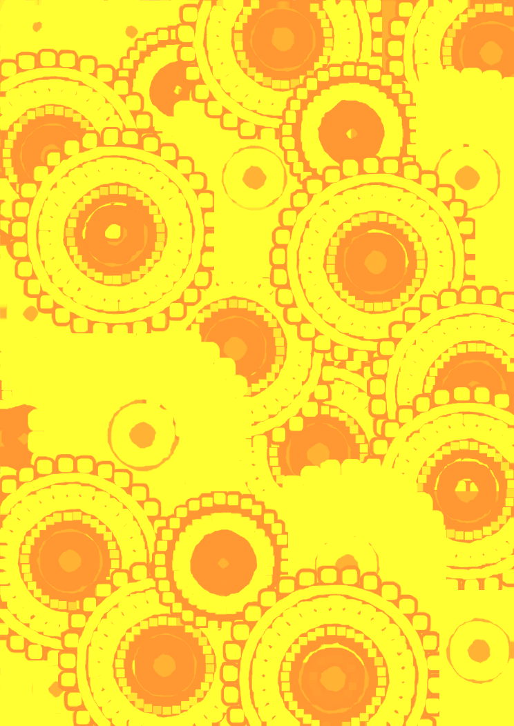 This features a yellow and orange patterned background with numerous circles of varying sizes. These circles are arranged in a visually appealing manner, creating an interesting design that can be used for card making or scrapbooking projects. The combination of the yellow and orange colors adds warmth to the overall appearance of the print, making it suitable for various occasions. The intricate pattern created by these circles makes the background stand out and draws attention to the details in the image.