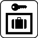 This features a white sign with a key and suitcase on it. The key is placed above the suitcase, which occupies most of the space in the sign. This could be an advertisement or symbol for luggage storage services or travel-related businesses. The simplicity of the design makes it easy to understand and recognize the intended message.
