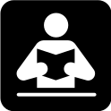 This features a black and white sign with an icon of a person holding a book. This symbol is commonly used to represent libraries or reading-related services. The sign appears to be placed on top of a table, possibly in a library setting. The design of the sign is simple yet effective in conveying its intended message.