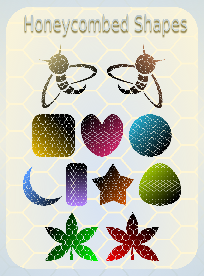 Tags: bee, circle, colorful, crescent, heart, insect, leaf, love, pattern, rectangle, shape, square, star, triangle, honeycomb shape, honeycomb icon, bee icon, shapes honeycomb