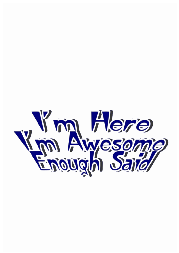This features a white background with blue text that reads, "I'm here awesome enough said." This phrase is written in a bold and eye-catching manner. The text appears to be a motivational or inspirational message, encouraging the reader to believe in themselves and their abilities.