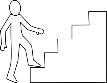 This features a person walking up a set of stairs, with their body facing the viewer. They are in the process of climbing the steps and appear to be focused on their destination. The staircase is white and has a clear outline, making it easy to see each step. The person's figure is depicted as a silhouette, emphasizing their movement and adding depth to the scene.