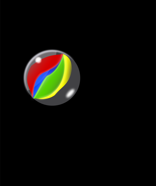 This features a colorful marble ball, which is the main focus of the scene. It appears to be floating in a black space, giving it an interesting contrast against its surroundings. The marble ball has a unique design with different colors on it, making it stand out even more. Overall, this image captures a visually appealing and intriguing composition that draws the viewer's attention to the vibrant marble ball.