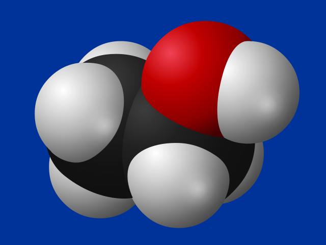 This features a close-up of an ethanol molecule, which is a type of alcohol. It appears to be a three-dimensional representation of the molecule, with its atoms and bonds clearly visible. The molecule is composed of carbon, hydrogen, and oxygen atoms, forming a complex structure that gives it its unique properties. This image provides an interesting perspective on the inner workings of this common substance, which can be found in various forms such as alcoholic beverages or fuels.