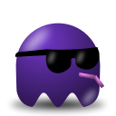 This features a purple cartoon character wearing sunglasses and holding a cigarette in its mouth. This character is reminiscent of the classic Pac-Man, but with a modern twist. The character's design includes a hat and shades, giving it a cool and stylish appearance. The color scheme of purple and black adds to the overall visual appeal of the character.