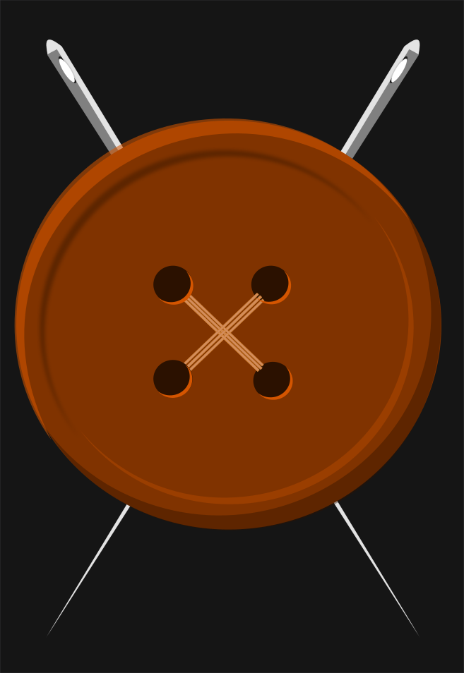 This features a close-up of an old brown button with four holes in it. The button is placed on a black background, which creates a striking contrast between the brown and black colors. The button appears to be made from wood, giving it a rustic and vintage appearance. This unique design element adds character to the image, making it stand out as an interesting focal point.