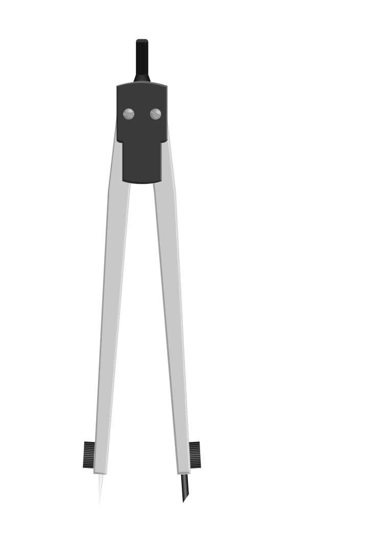 This features a pair of drawing compasses, which are used for measuring angles and distances. These compasses have a unique design with two legs that can be adjusted to fit the desired measurement. They are set up in such a way that the rotation point of the legs is at the screw points, making it easy to resize them using Inkscape or other similar software. The drawing compasses are positioned on a white background, which provides a clean and uncluttered appearance.