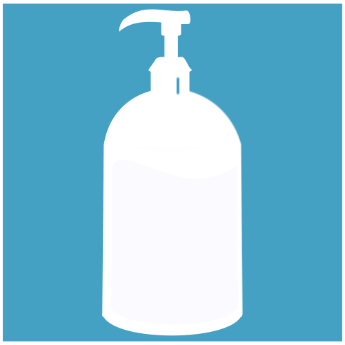This features a white bottle with a blue background. The bottle is prominently displayed in the foreground, taking up most of the frame. It appears to be an icon or symbol representing a soap dispenser, as it is commonly used for handwashing purposes. The bottle's shape and size make it easily recognizable and distinguishable from other objects in the scene.