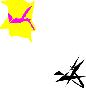 This features a yellow and pink star with a black outline, placed on a white background. The star is positioned towards the left side of the image, while the pink portion of the star is located more towards the center. The overall composition creates an interesting contrast between the vibrant colors and the stark white background.