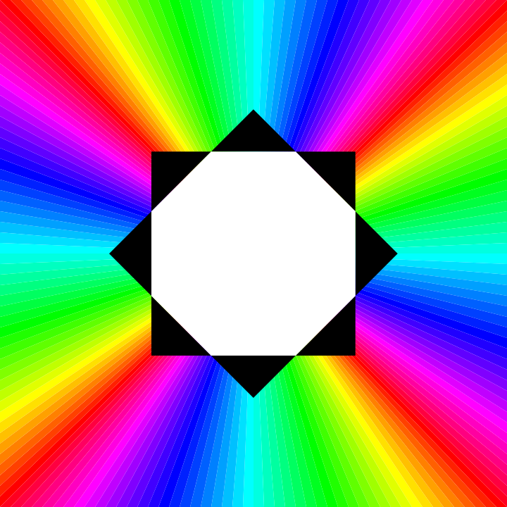 This features a colorful, rainbow-colored square with a black outline. This unique design creates an eye-catching and vibrant appearance. The square is positioned in the center of the frame, drawing attention to its striking colors and contrast against the background. The combination of bright hues and the bold black outline make this image truly stand out and evoke feelings of excitement or wonder.