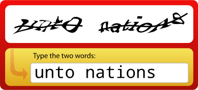 This is a CAPTCHA verification image, which appears to be a reCAPTCHA. It displays the words "unito nations" on it, indicating that the user needs to type in two words to verify their identity or access a particular website. The image has a red background and features a yellow arrow pointing towards the text, making it easy for users to identify the required input.