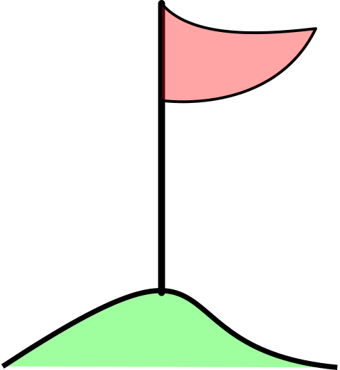 This features a red flag on top of a green hill. The flag is positioned at the top of the hill, and it appears to be waving in the wind. The scene gives off an impression of a golf course or a sports field with the flag serving as a marker for players. The combination of the red flag and the green hill creates a visually appealing contrast between the two colors.