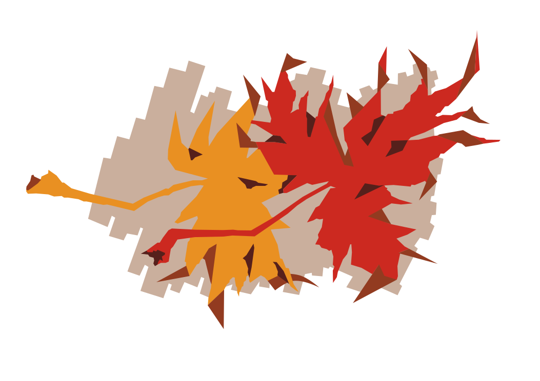This features a unique and artistic representation of autumn leaves. It is an intricate design that combines the shapes of two leaves, one orange and one brown, creating a visually appealing composition. The leaves are positioned in such a way that they appear to be interacting with each other, giving the impression of a dynamic scene. This creative representation of autumn foliage showcases the beauty of nature's seasonal changes while also serving as an interesting visual piece.