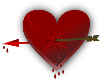 This features a red heart with an arrow pointing towards it, symbolizing the concept of love. Inside the heart, there are several drops of blood, which represent the pain and suffering associated with love. This visual representation is often used to convey emotions or experiences related to love, relationships, or heartbreaks. The image can be interpreted as a metaphor for the vulnerability and fragility of human emotions, emphasizing the importance of understanding and empathizing with others' feelings.