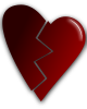 This features a heart symbol, which has been broken in half. The crack is located down the middle of the heart, dividing it into two distinct pieces. This illustration may represent a sense of loss or separation, as the heart is often associated with love and emotional connections. The red color of the heart adds to its visual impact and emphasizes the painful nature of the broken symbol.