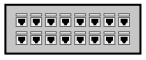 This features a gray box with sixteen ethernet ports. These ports are arranged in rows, each row containing four ports. The box is outlined with black color and appears to be rectangular in shape. This type of device is commonly used for networking purposes, allowing multiple devices to connect to the internet simultaneously through the use of these ports.