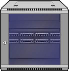 This features a server rack with a blue transparent lid. Inside the rack, there are several empty slots for equipment to be placed. The rack is one third full, indicating that it has room for additional items. The overall appearance of the rack suggests that it is ready for use and can accommodate more hardware components.