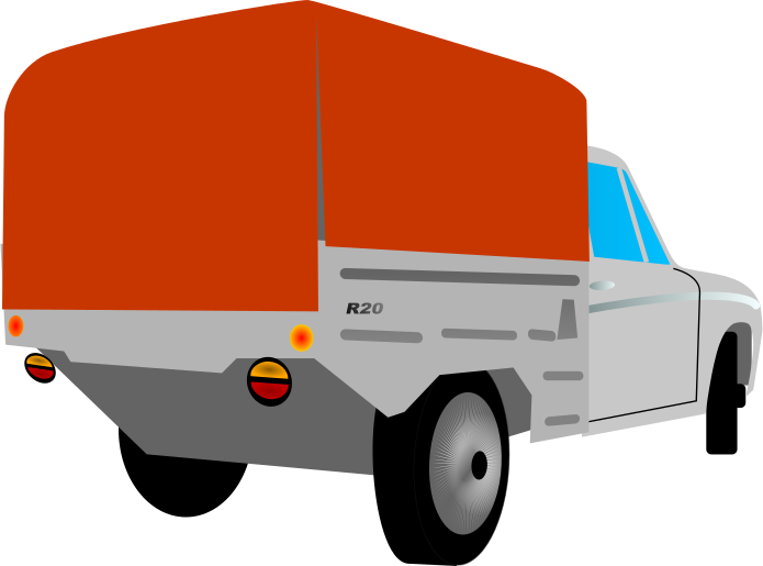 Tags: car, clip art, clipart, image, media, pick up, png, poland, public domain, svg, transportation, vehicle, truck, red, orange, white, black and white, colorful, cartoon, illustration
