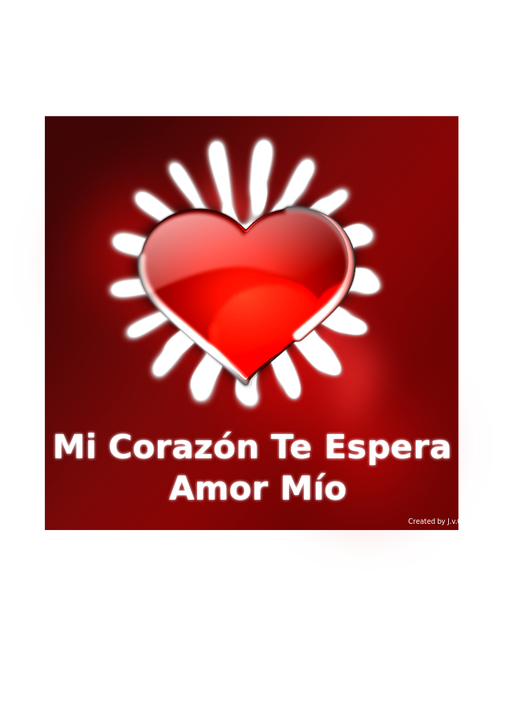 This features a red heart with white lines behind it, which is the main focus of the picture. The heart appears to be made out of a material that resembles rubies or jewels, giving it an elegant and luxurious appearance. Below the heart, there is a white text that reads "mi corazón te espera amor mío," which translates to "my heart is waiting for you, my love." The combination of the red heart and the white text creates a visually appealing and romantic image.