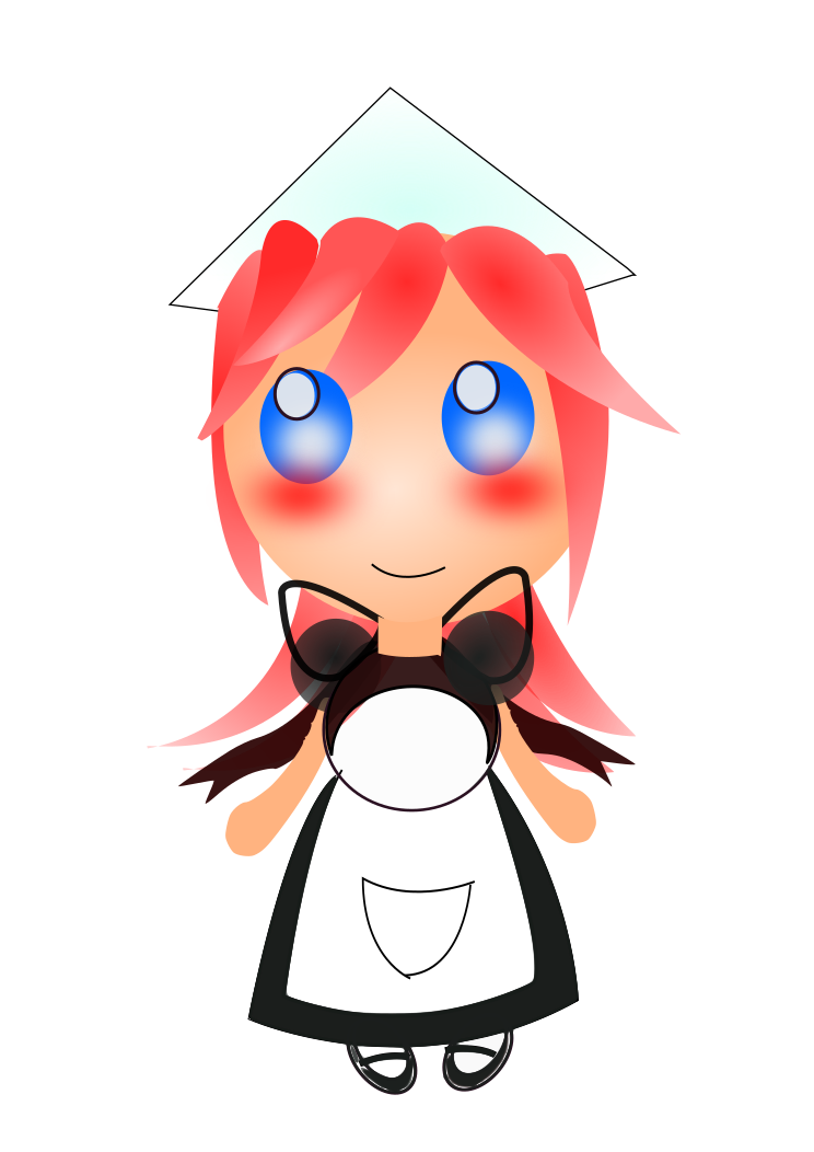 This features a cartoon character, possibly a girl or woman, wearing an apron and holding a spoon. She appears to be smiling as she poses for the picture. The character is depicted in various colors, including red, blue, pink, and white. The overall scene has a whimsical and playful vibe, with the cartoon character standing out against a brown background.